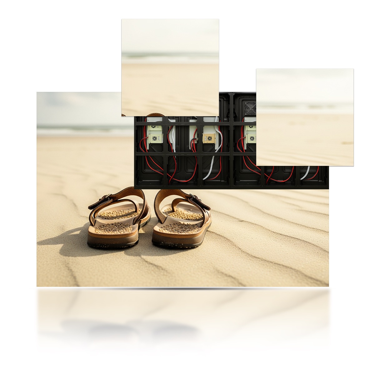 The P4mm outdoor led panel features a 960mm x 960mm x 146 mm die‑cast aluminum cabinet machined to ± 0.3 % tolerance, housing a 240 x 240 pixel array of SMD 1921 LEDs on a 2‑layer, 1.6 mm PCB. CFD325 driver ICs run a 1/10 scan at 7,680 Hz with 15‑bit gray‑scale depth for artifact‑free video and text, while a Nova A5s Plus receiving card ingests data via direct Ethernet. Triple Nandian NDB300PS5 power supplies deliver up to 750 W peak, driving clear 6000 nits of brightness (cd/m²) at ≥ 5000 : 1 contrast and a 12,000 K white point across a 160°