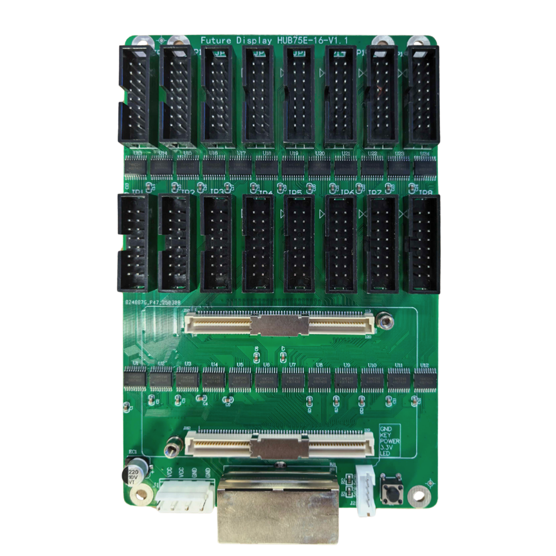 The 960×960×55 mm cabinet packs a 384×384 pixel matrix using high‑precision SMD 2020 LEDs on a 2‑layer, 1.6 mm PCB. ICN1065L driver ICs run at a 1/32 scan rate, delivering a 3,840 Hz refresh frequency with 13‑bit gray‑scale depth for artifact‑free motion and shading. A Nova A5s Plus receiving card handles data input via direct Ethernet, while dual Nandian NB200P55 power supplies provide up to 360 W peak consumption through a direct‑power interface. Optically tuned to 600 nits (cd/m²) and ≥ 5000 : 1 contrast, with a 12,000 K‑calibrated white point and a 160°×160° viewing angle, it produces vivid, uniform imagery. The full die‑cast aluminum front and iron back chassis—with ± 0.3 % dimensional tolerance ensuring seamless tile alignment. Weighing 25 kg (55 lbs), front‑access magnetic modules allow rapid servicing while supporting fixed wall‑mount installations. An IP30 rating makes it ideal for permanent indoor applications.
