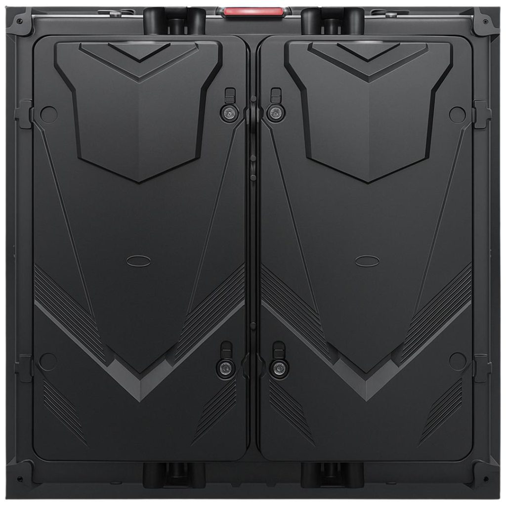 Each cabinet features a full die‑cast aluminum front and iron back, optimized thermal balance, and seamless cabinet‑to‑cabinet alignment. Inside, a 3 x 6 array of 320mm x 160mm modules links via soft‑cable connections for straightforward servicing and good signal flexibility.